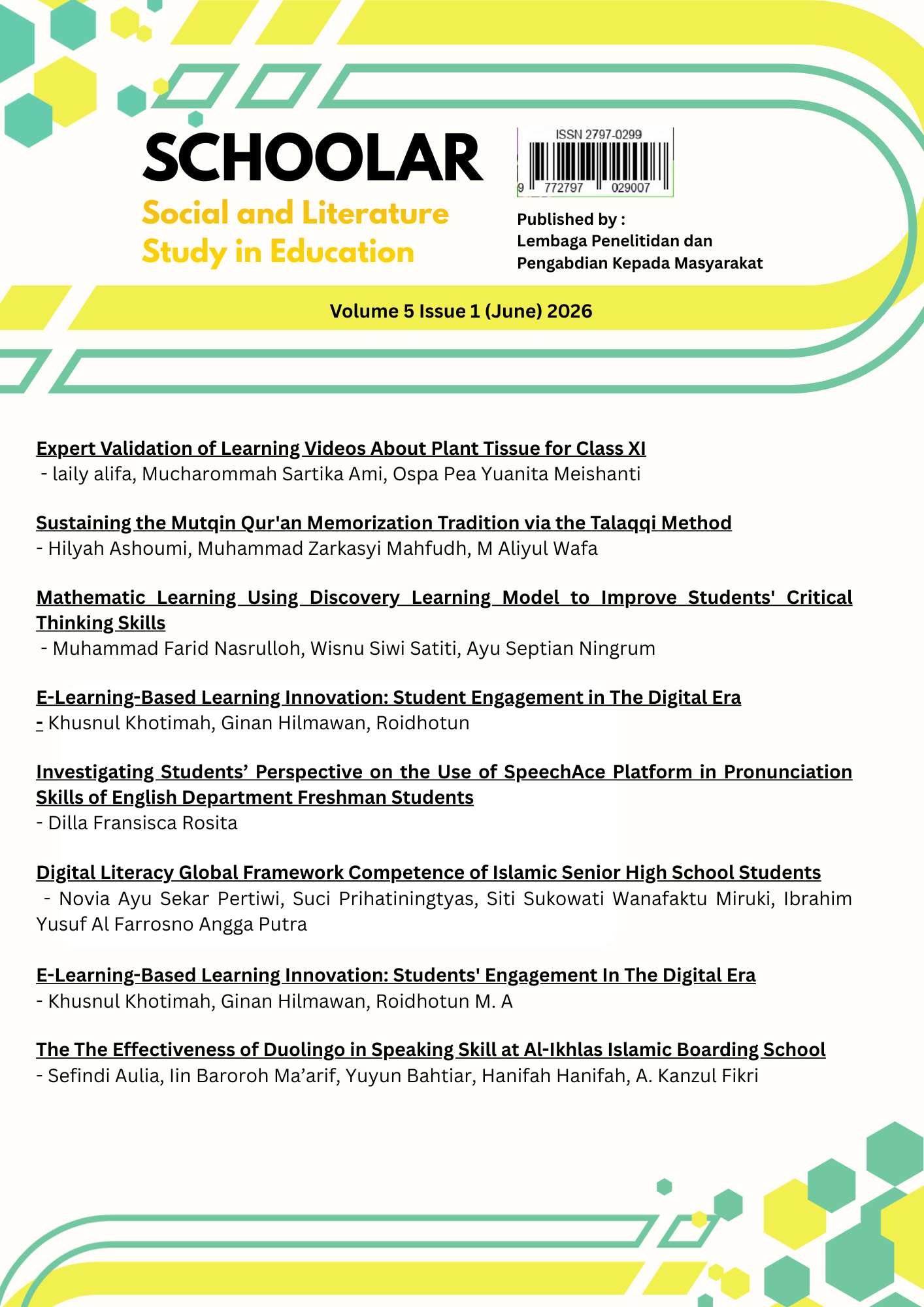 About JournalSCHOOLAR : Social and Literature Study in Education